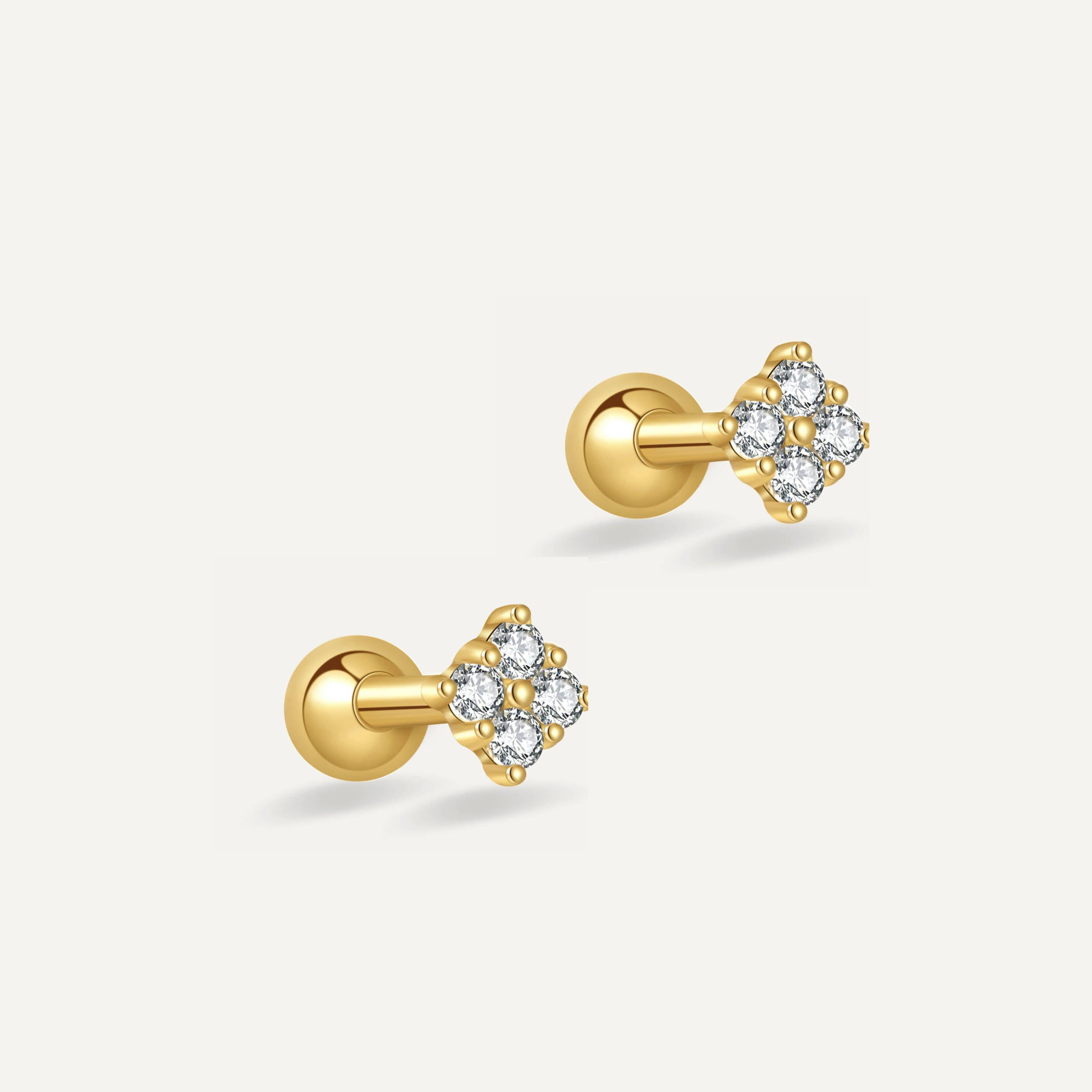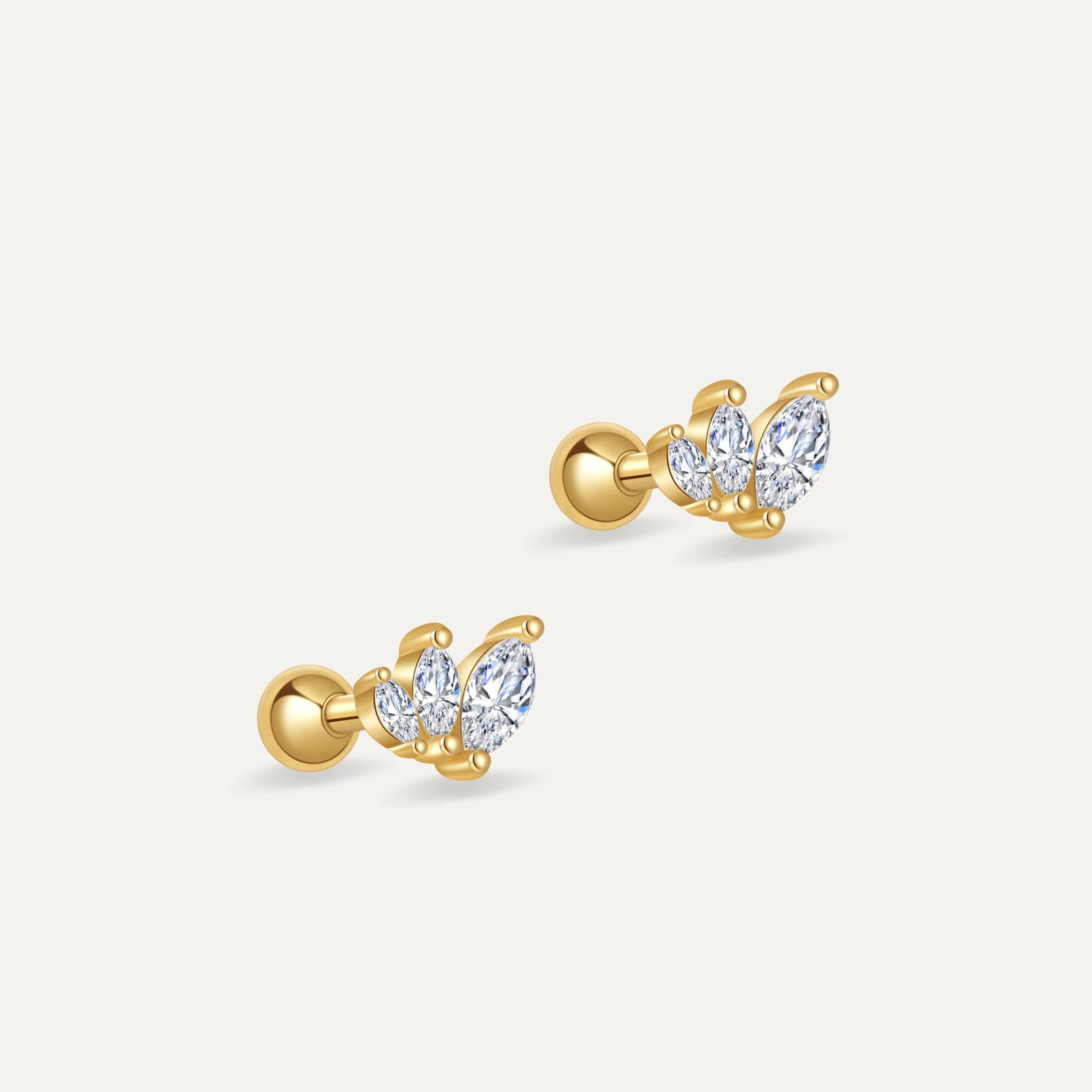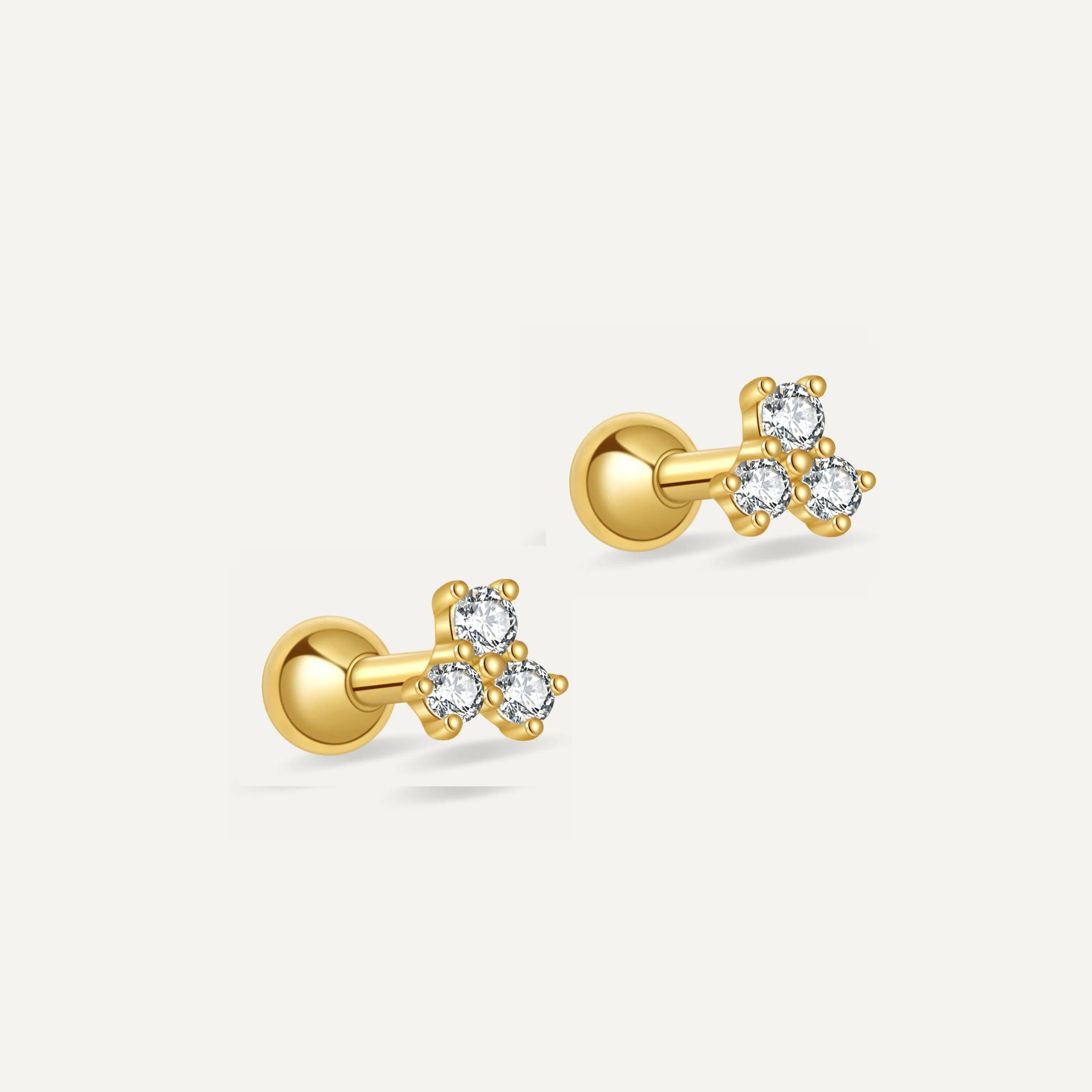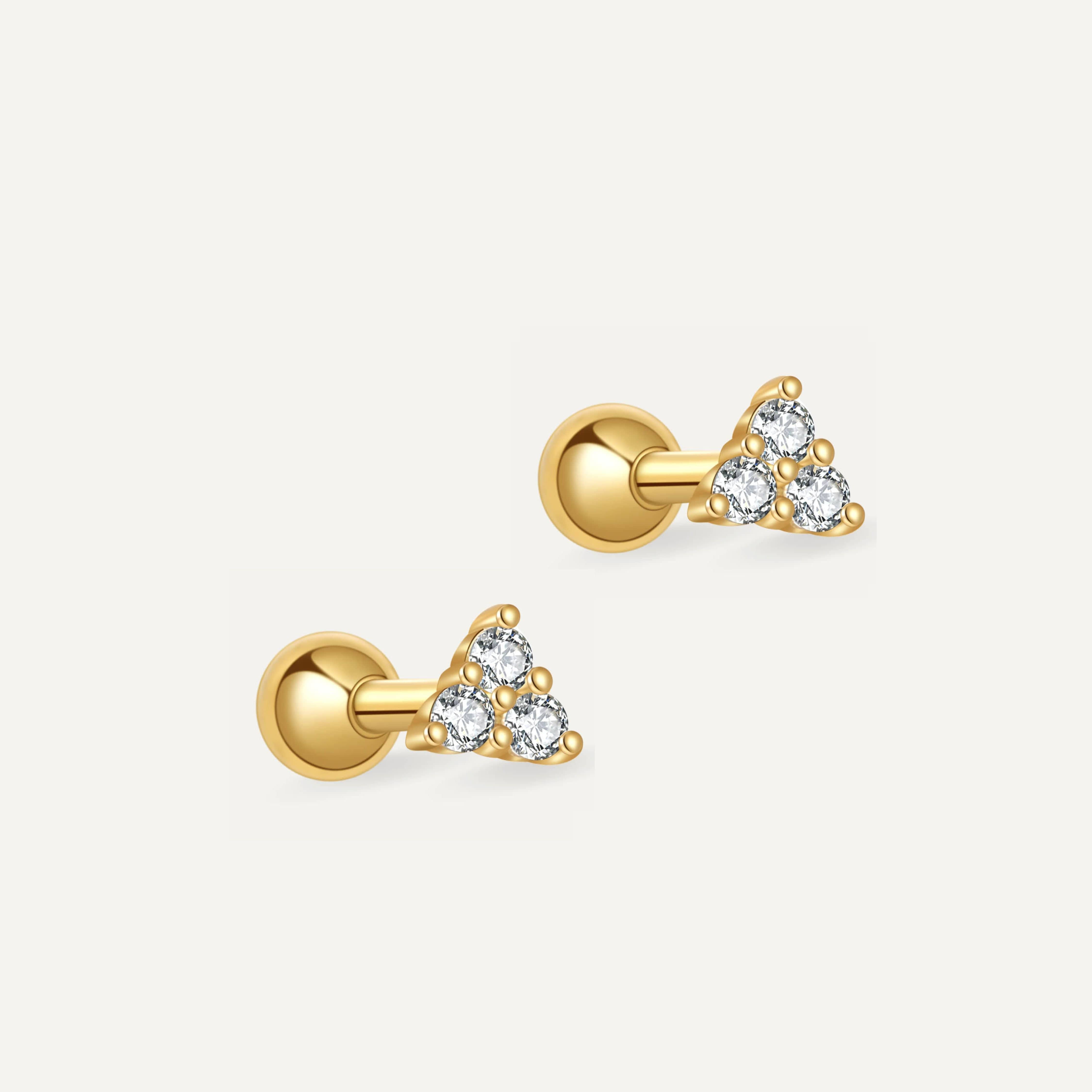 14K Solid Gold Trinity Threaded Stud Diamond Earring