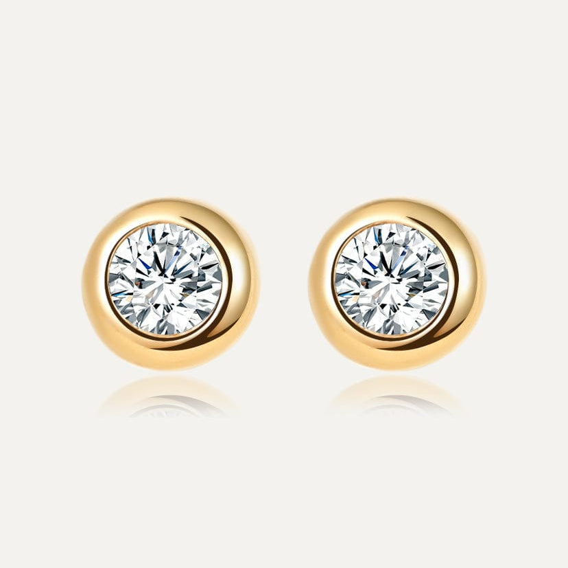Each Heirloom Bezel Diamond Earring is enriched with glistering diamonds encased in a beautiful 14K solid gold frame. The circular bezel setting not only holds the diamond but also adds a touch of antique charm to the entire design, resulting in an heirloom-worthy look. The diamonds used in these earrings are signatures of endless luster and purity, ensuring sparkling dance of light with every movement. The rich, warm color of 14 karat solid gold combined with the radiance of diamonds makes these earrings a complement to any jewelry collection. Wearing the gold bezel diamond earring, you get entitled to a timeless voguish aura!
