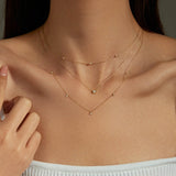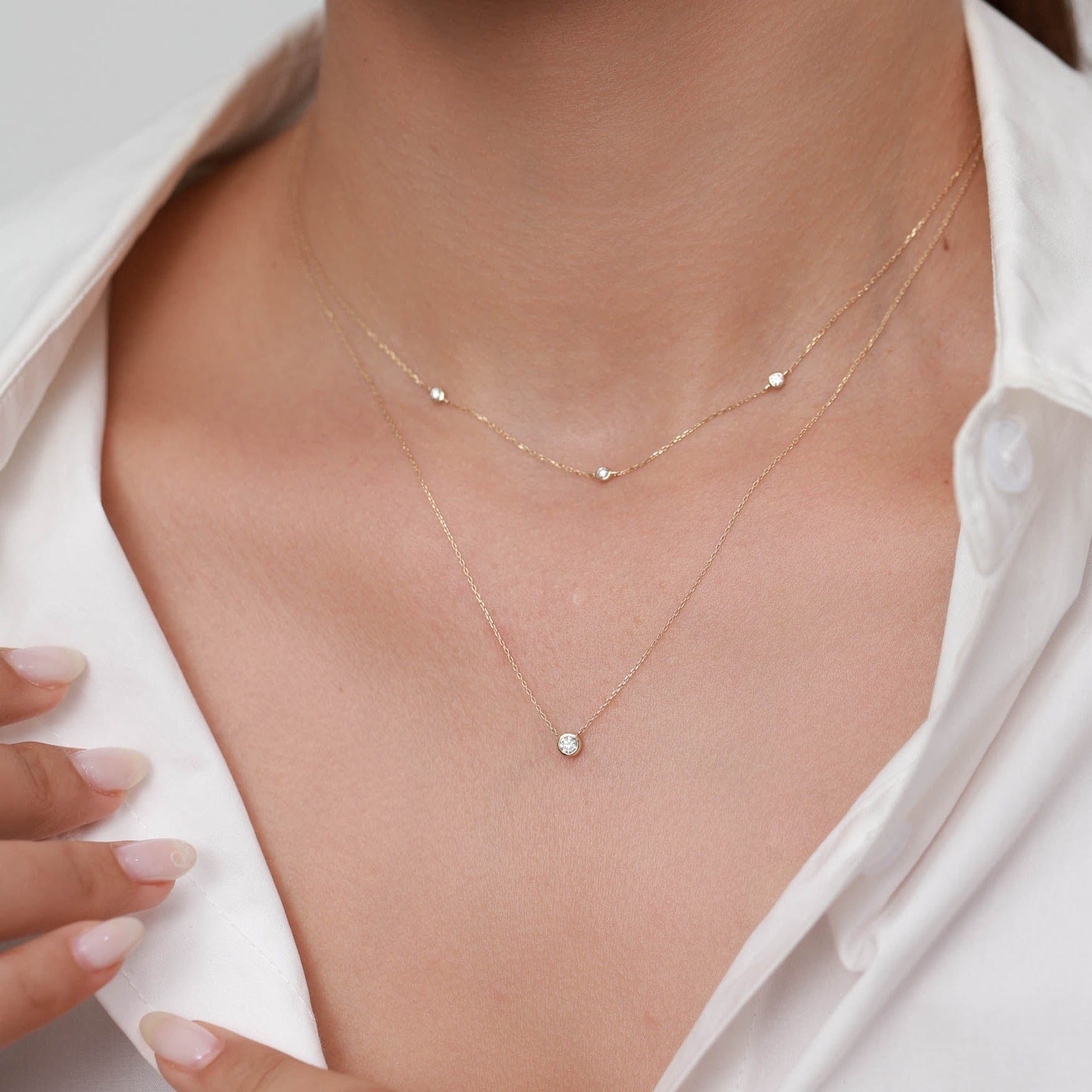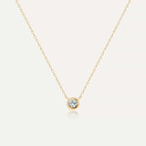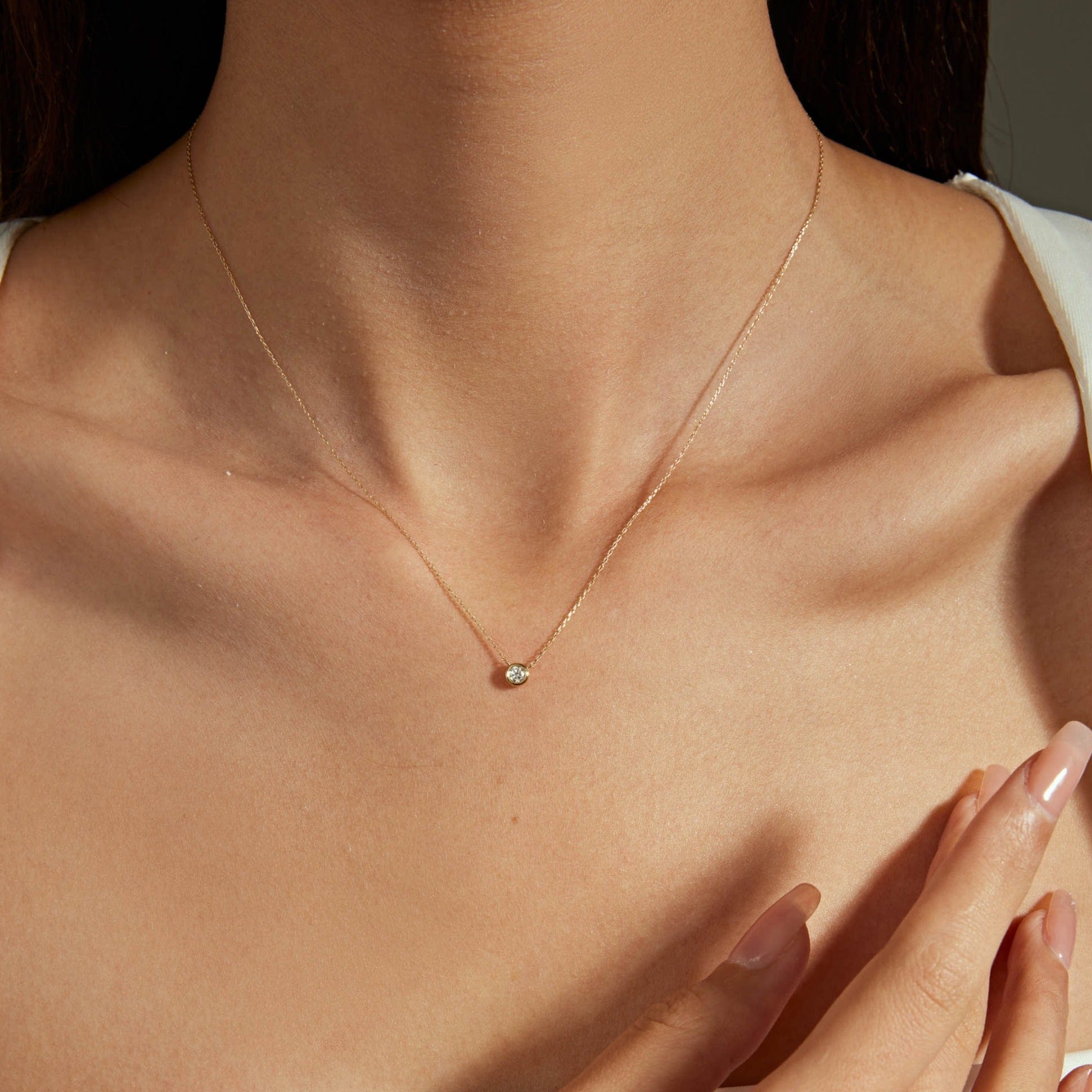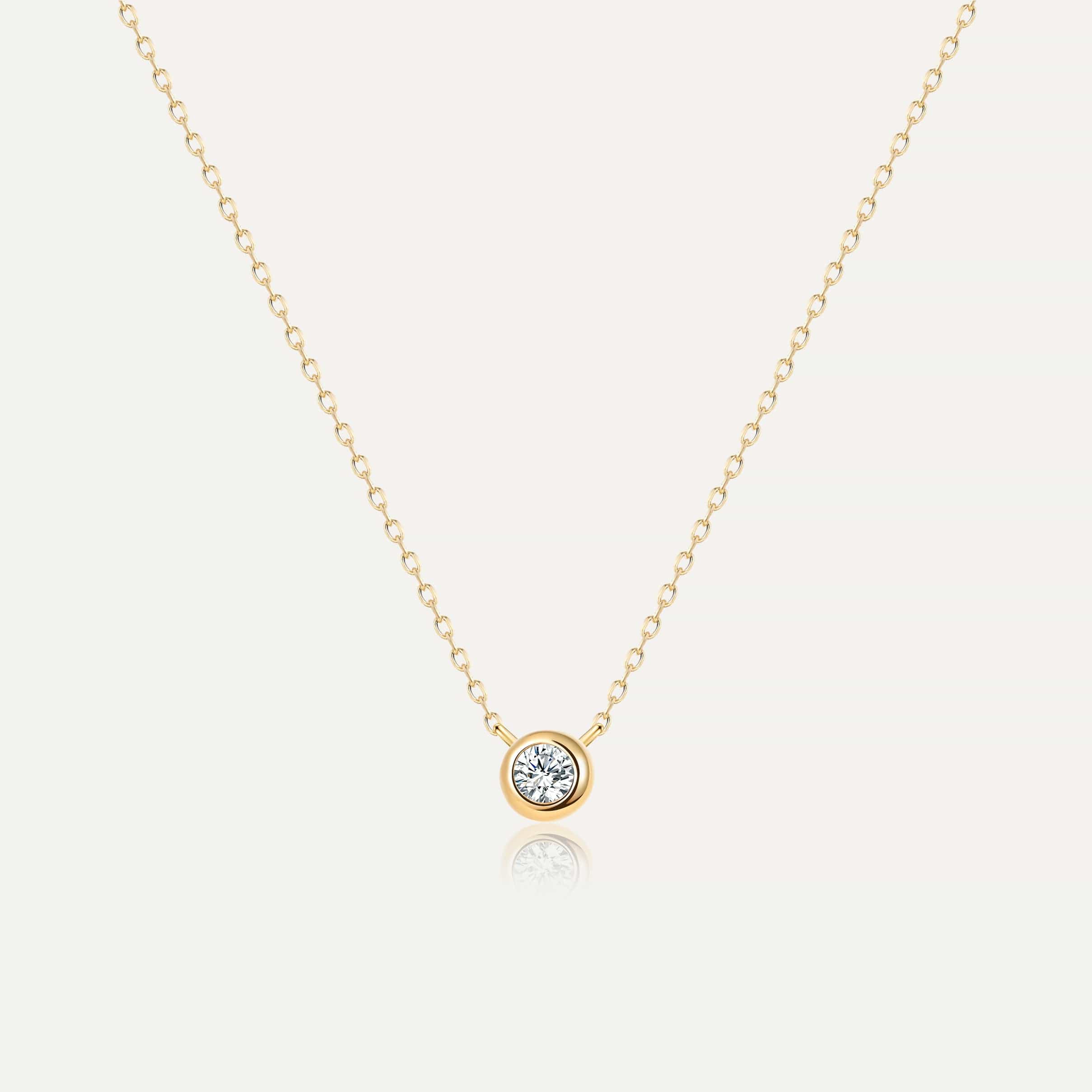 Each Heirloom Bezel Diamond Necklace is embellished with gleaming diamonds and set in a stunning 14K solid gold frame. Circular bezel setting not only fits diamonds but also gives a touch of ancient elegance to the overall design, creating an heirloom-worthy appeal. The diamond used in the gold necklace is a symbol of unending luster and purity. The rich, warm color of 14 carat solid gold, paired with the sparkle of diamond, make the Heirloom Bezel Necklace a perfect addition to any jewelry collection. Wearing the gold bezel diamond necklace grants you access to a timeless, voguish atmosphere!