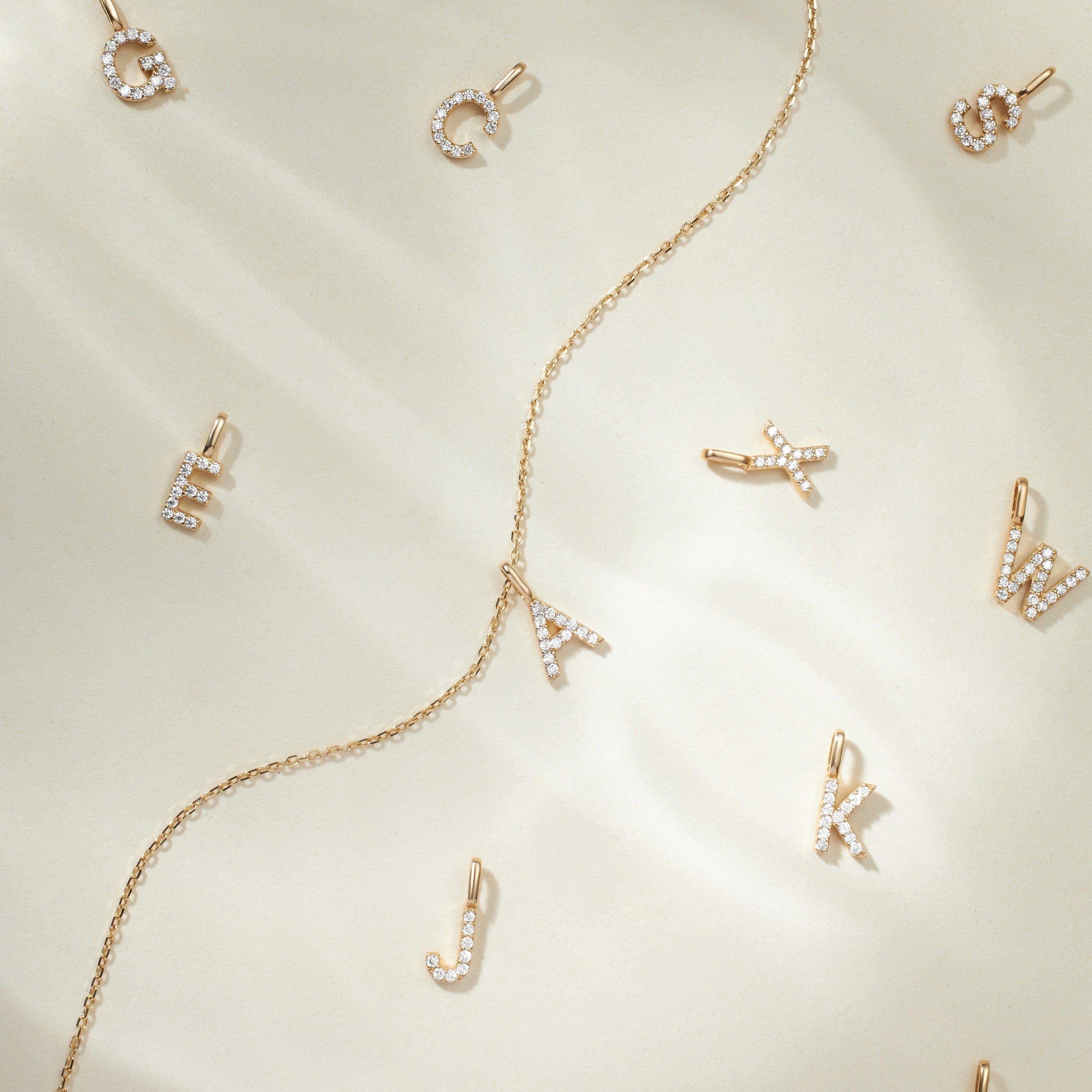 14K Solid Gold Initial Diamond Charms