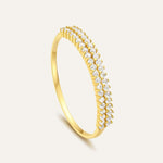 A solid gold ring with a sparkle of white pearls adds elegance to your personality. Contrasting glare of gold and white enhances the architecture of the ring. 14 karat gold with dual sapphire pearls is what makes it a peculiar jewel accessory. The dual-layered design of sapphire is unique to this gold filled ring and cannot be found anywhere else. Twinkling white pearls enrich the grace of your personality with its eye-catching spark. The pure 14k gold ring further embellishes your finger with the essence of beauty. This solid gold ring for women is the perfect piece of jewellery to be worn every day as well as at events. It is lightweight yet perfectly ornamented with white sapphire, which makes it your go-to choice for formals or informal gatherings.