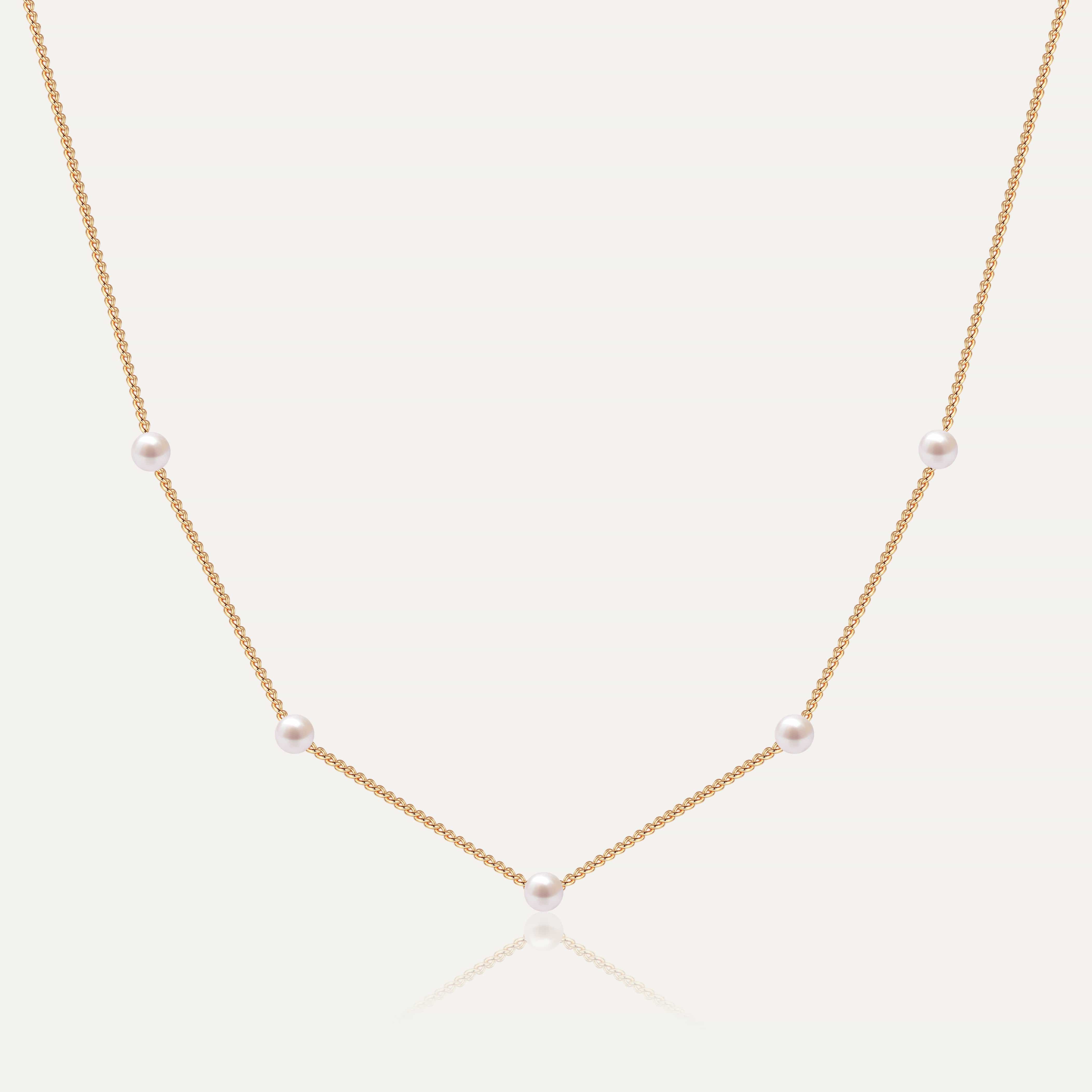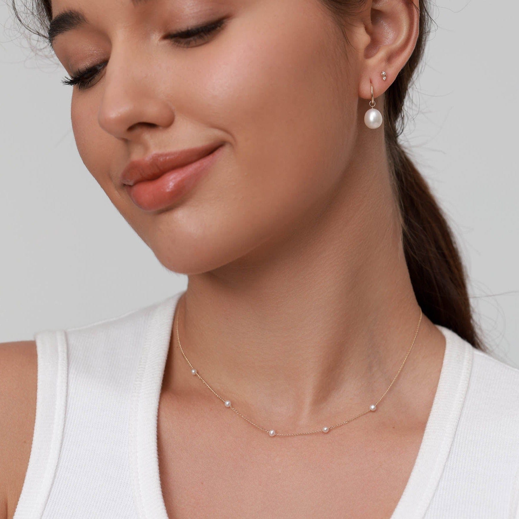14K gold allure pearl necklace features bright pearls dangling down the glaring gold chain. Naturally design freshwater pearls surrounded by tiny hints of shine, is like wearing a drop of moonlight. Solid gold pearl necklace is no less than a royal affair radiating shine whenever your wear it. Drop-down pearls are definition of natural charisma with their unique curves. Thus, a brilliant addition to your jewelry collection perfect for everyday enchantment. Gold allure pearl necklace adds warmth to your look, hence it's more than just a necklace; it's a heartbeat close to yourself.