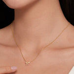 The Belle Sparkle Bow Necklace is the perfect blend of playful charm and elegant sparkle. Featuring a delicate bow design adorned with a touch of shimmering brilliance, this necklace is crafted in 14K Gold, Sterling Silver, and designed to add a subtle yet stunning statement to any outfit. Ideal for everyday wear or special occasions, it’s a timeless piece that will capture hearts with its graceful beauty
