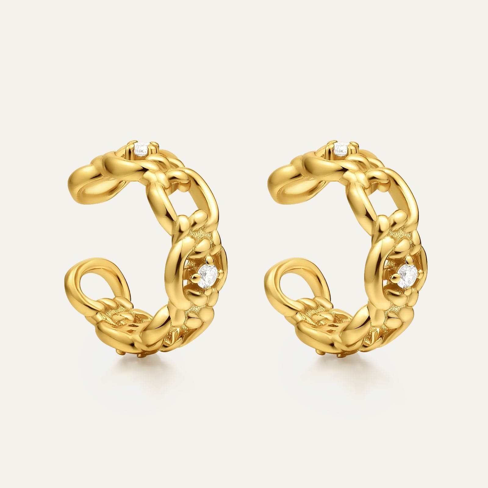 Make a statement—without the piercing. The Bling Chain Ear Cuff is your go-to sparkle piece, crafted with a gold-plated helix chain and shimmering zirconia for maximum shine.