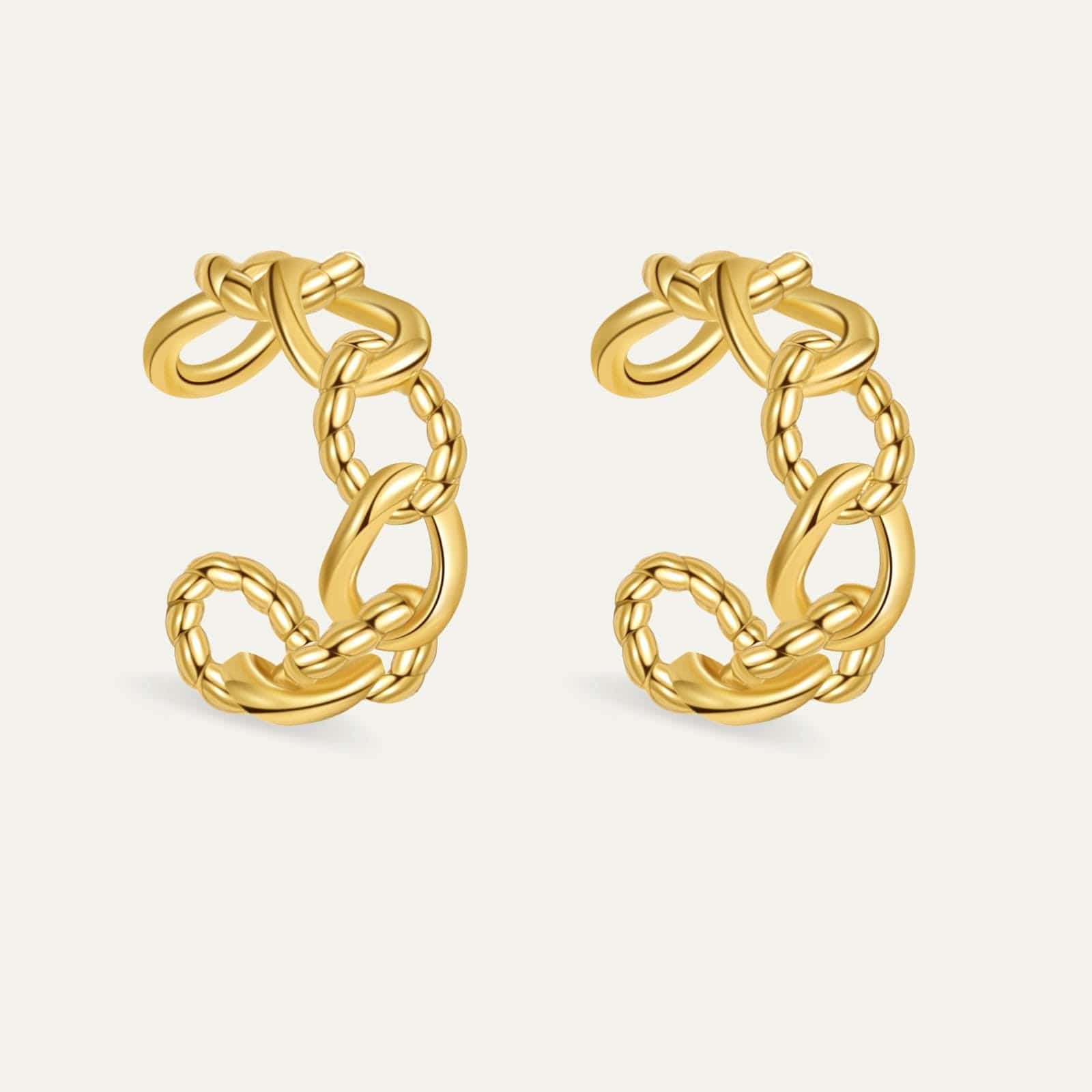 Enhance your appearance with this chain Ear Cuff. The perfectly crafted gold chain molded into the ear cuff is the exclusive accessory to be worn every day. These no-piercing chain ear cuffs combine bold style to your outlook. Crafted to attach to your ear, this cascading chain pattern with glaring gold adds flare to your look. These cute ear cuffs are a must-have accessory for the fashionista. It looks great with everything from leather coats to tiny black skirts. Show off your edgy elegance with these swanky chain ear cuffs and experience voguish style.