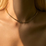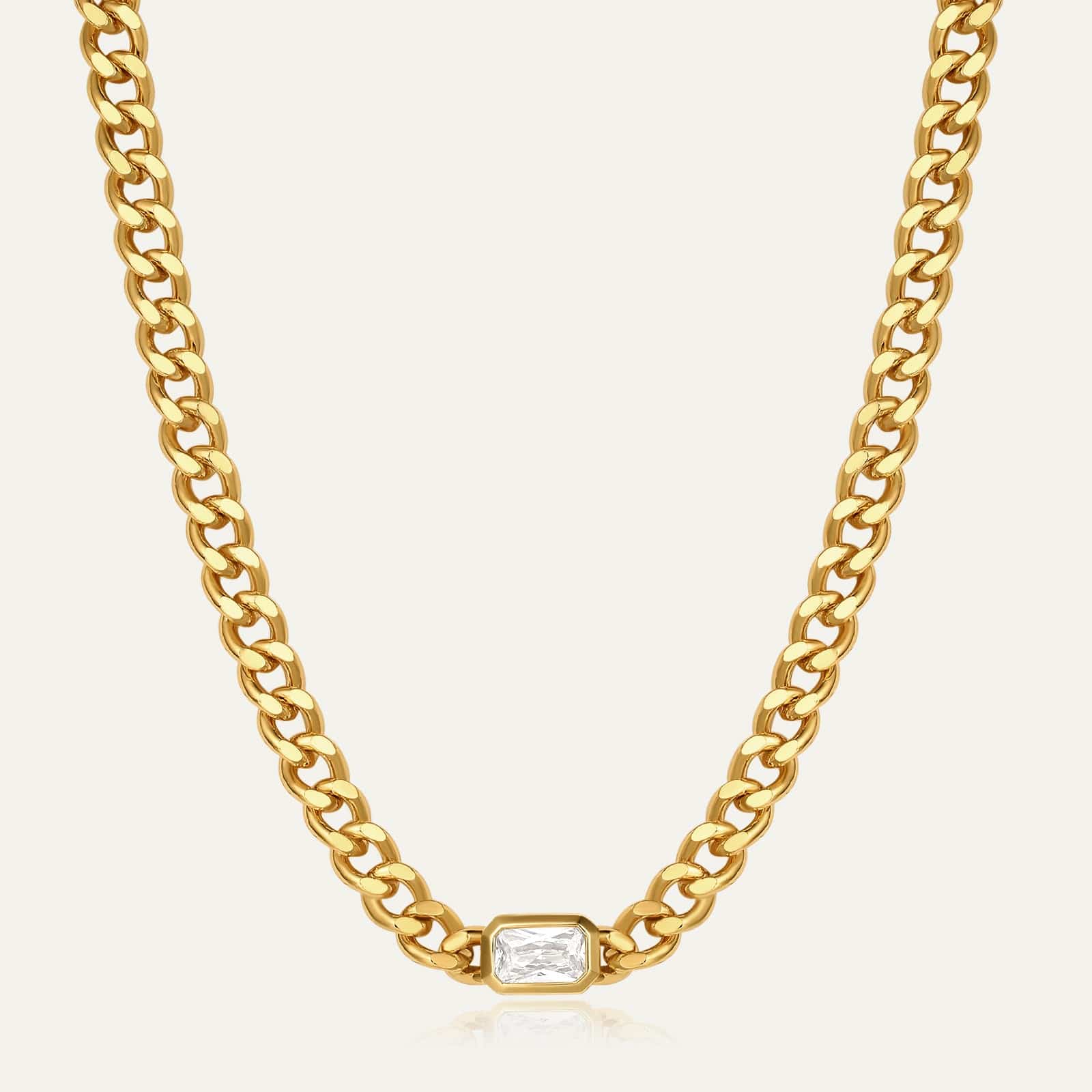 Featuring a flattened and twisted design, the curb link necklace forms a captivating aesthetic pattern that effortlessly elevates any outfit. This versatile piece adds a touch of luxury and sophistication to your jewelry collection with its distinctive chain style.