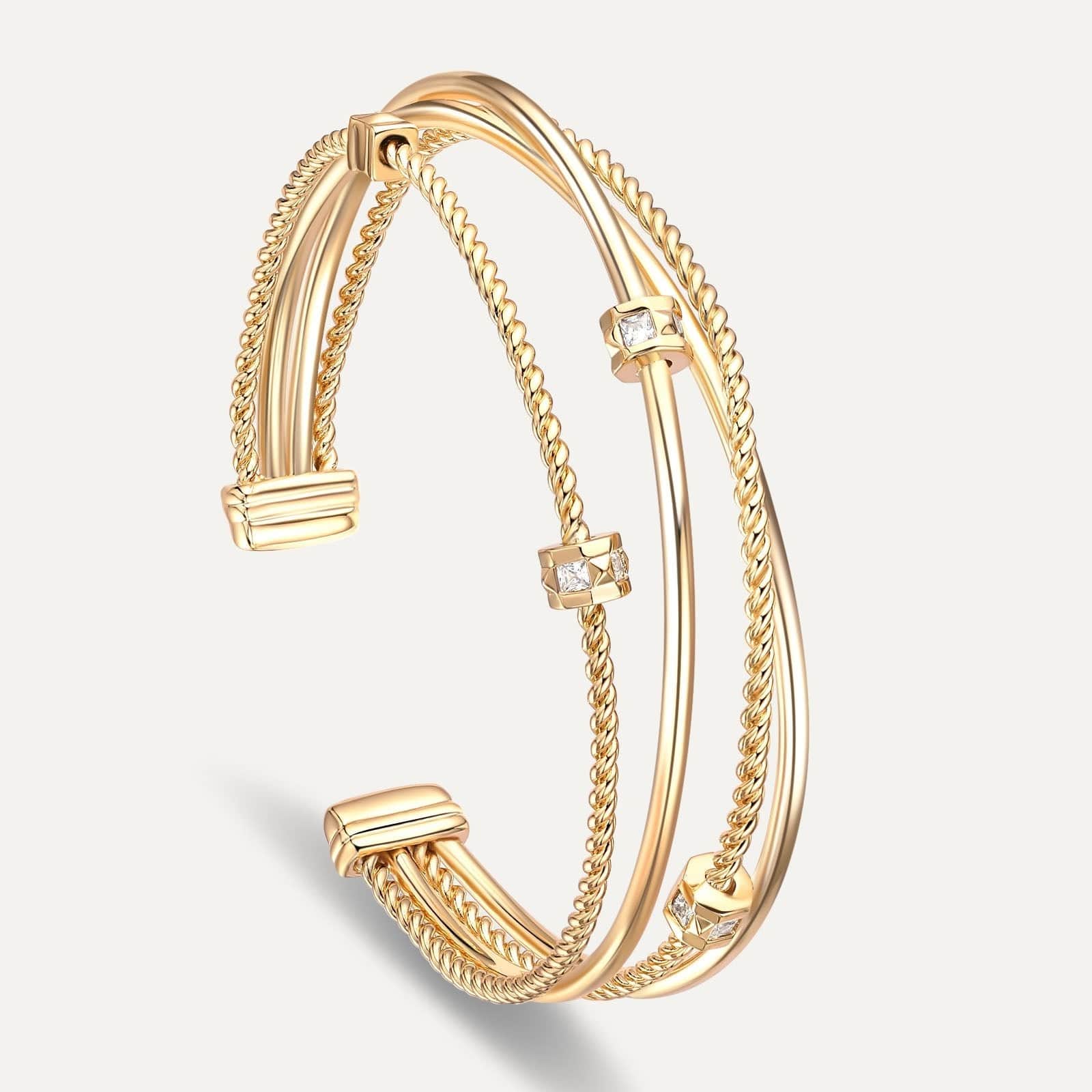 Add a touch of extravagance to your style with our Double Crossover Bangle. Its distinct double crossover design elevates the look with royal radiance and captivating elegance, making it a versatile piece that complements both casual and formal outfits.