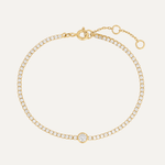 Crafted in 14K gold and set with a seamless row of brilliant stones, the Eclipse Tennis Bracelet wraps your wrist in refined, continuous sparkle. Slim, lightweight, and designed for everyday wear, elegant alone, effortless for stacking.