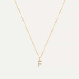 F Necklace / 14K Solid Gold Initial Diamond Necklace