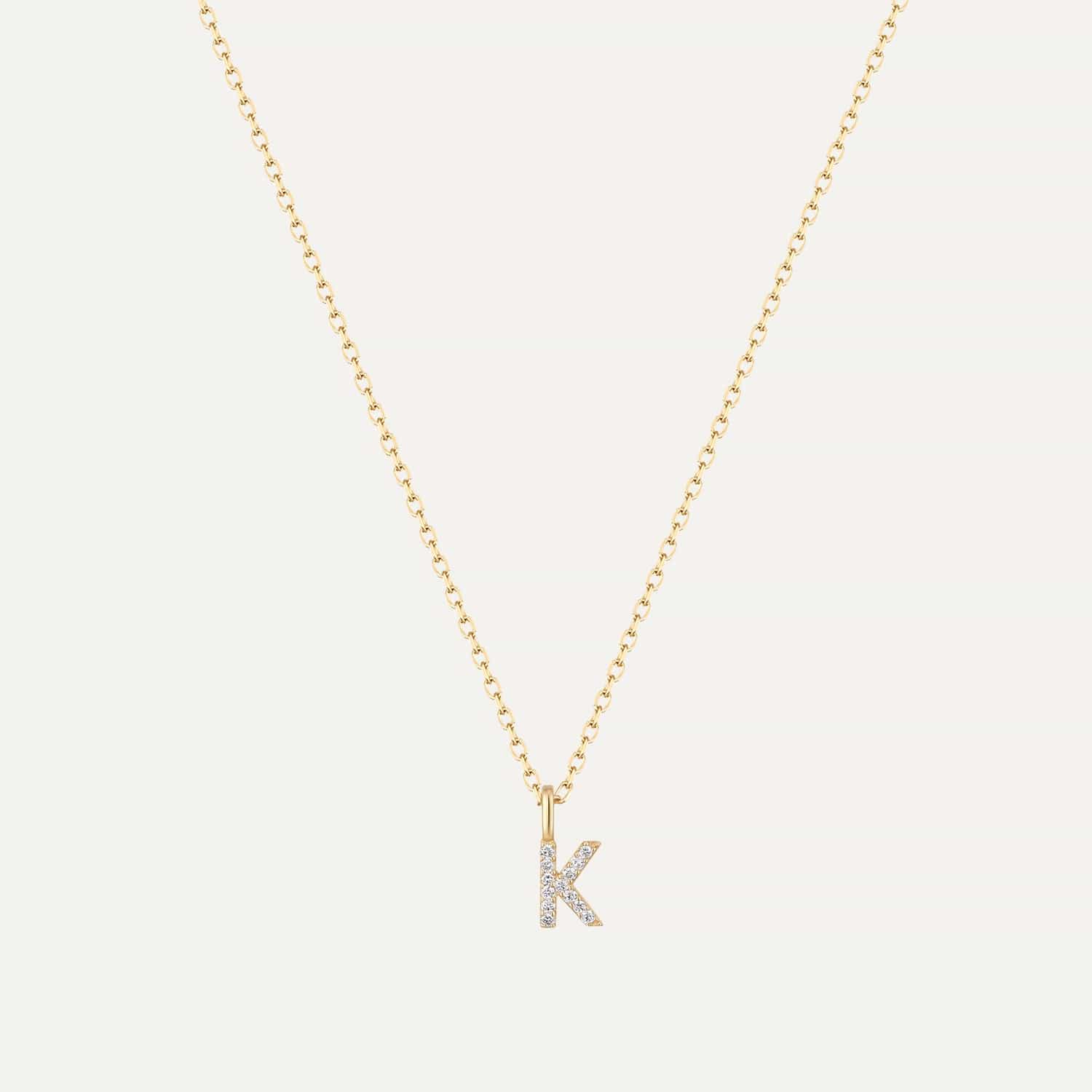 K Necklace / 14K Solid Gold Initial Diamond Necklace