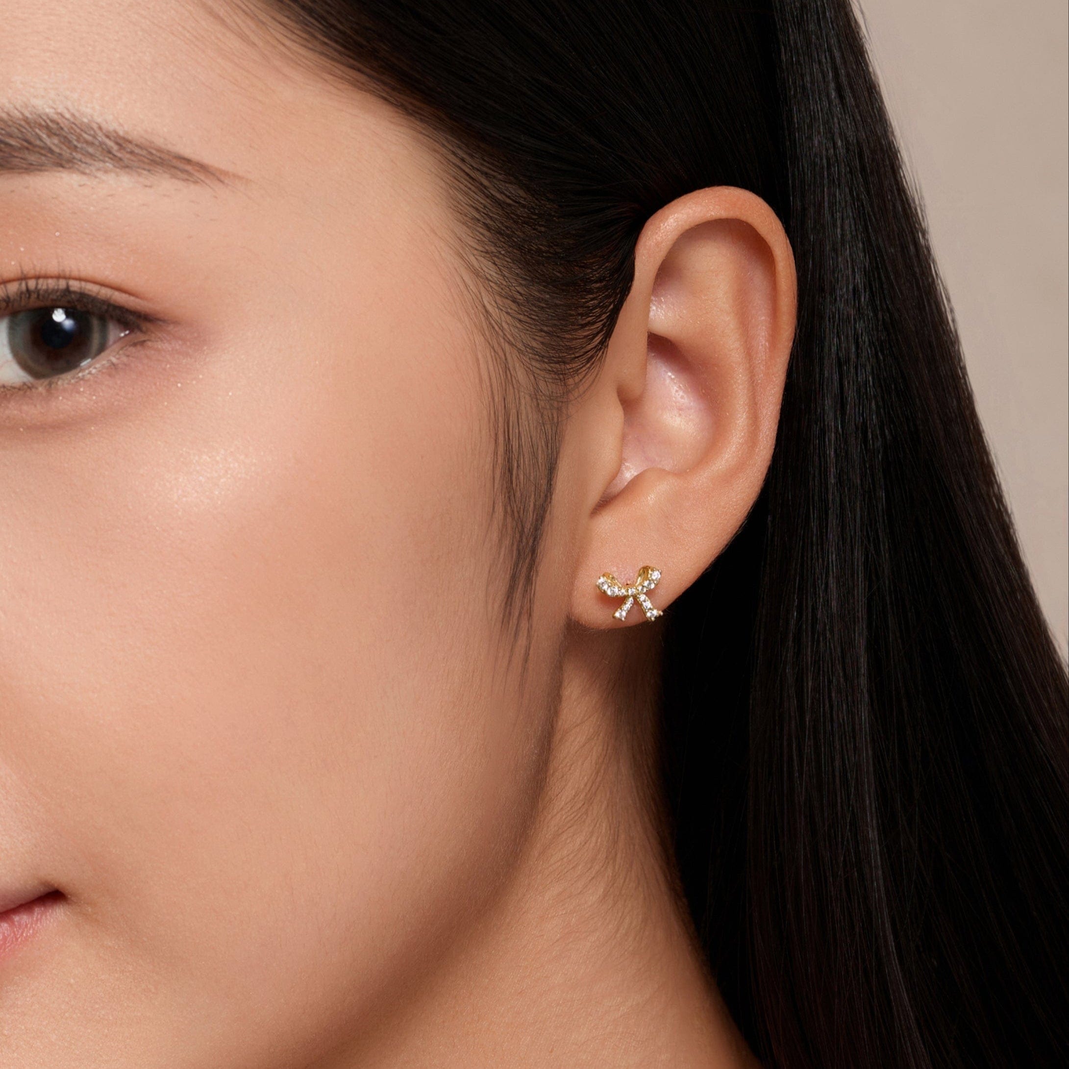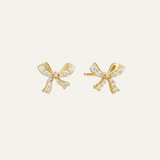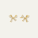 The Bow Sparkle Studs combine timeless elegance with a hint of sparkle. Crafted in 14K Gold and Sterling Silver, these dainty bow-shaped studs are adorned with subtle shimmering accents that add a touch of glamour. Perfect for any occasion, they offer a graceful, yet playful, statement to elevate your look.