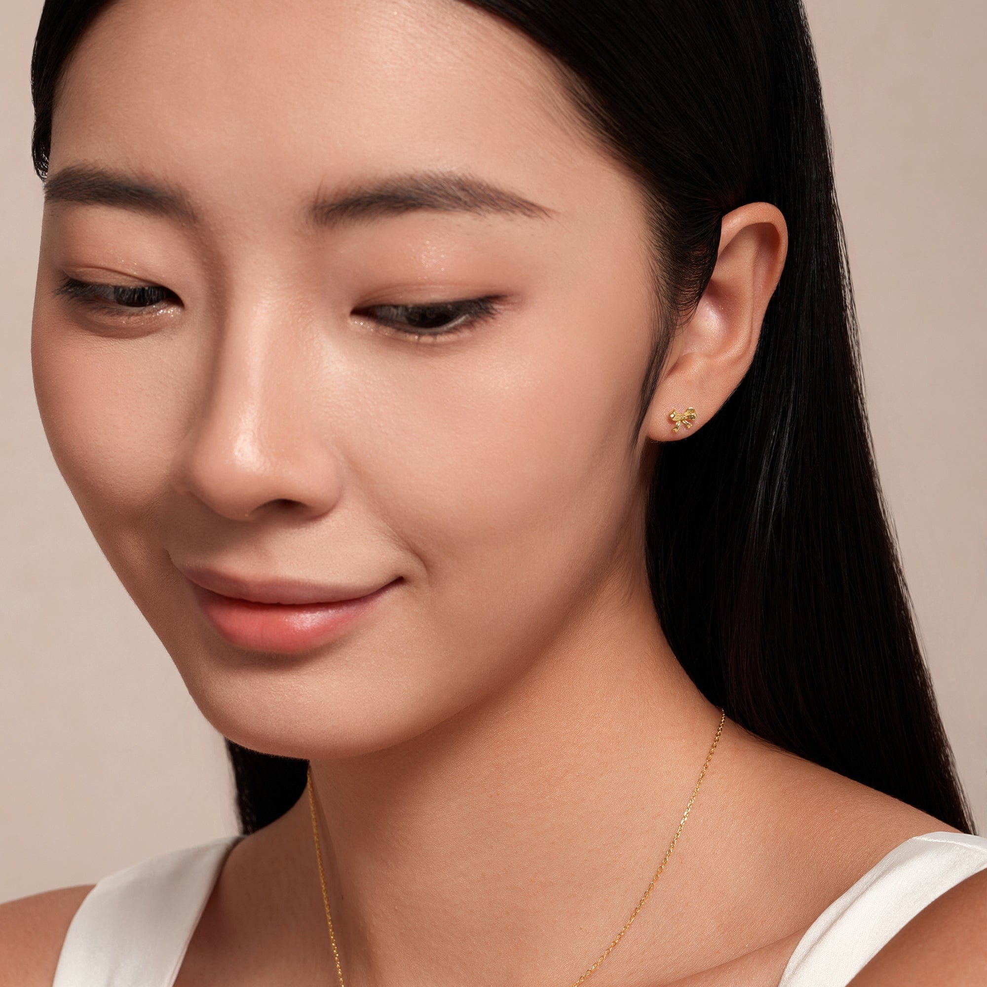 The Bow Studs are a perfect balance of elegance and playfulness. Crafted in 14K Gold Sterling Silver, these earrings feature a delicate bow design that adds a touch of whimsy to any look. Whether you're dressing up for a special occasion or adding a charming detail to your everyday ensemble, these earrings are a timeless statement piece