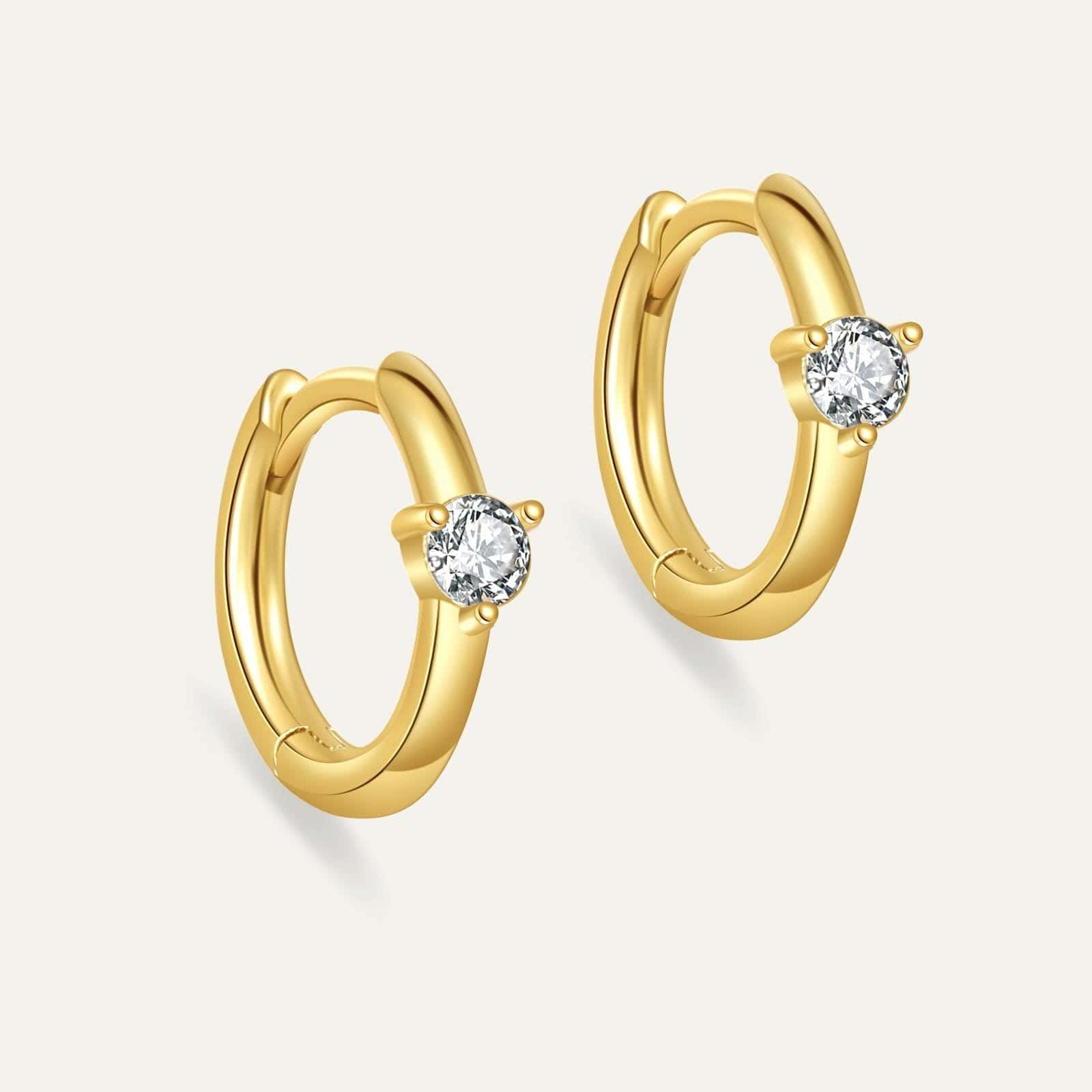 Effortlessly chic, the Kismet Mini Huggies are the perfect everyday addition to your ear stack. Crafted with delicate 14K gold plating and adorned with round, brilliant-cut zirconia stones, these huggies add just the right touch of subtle sparkle.