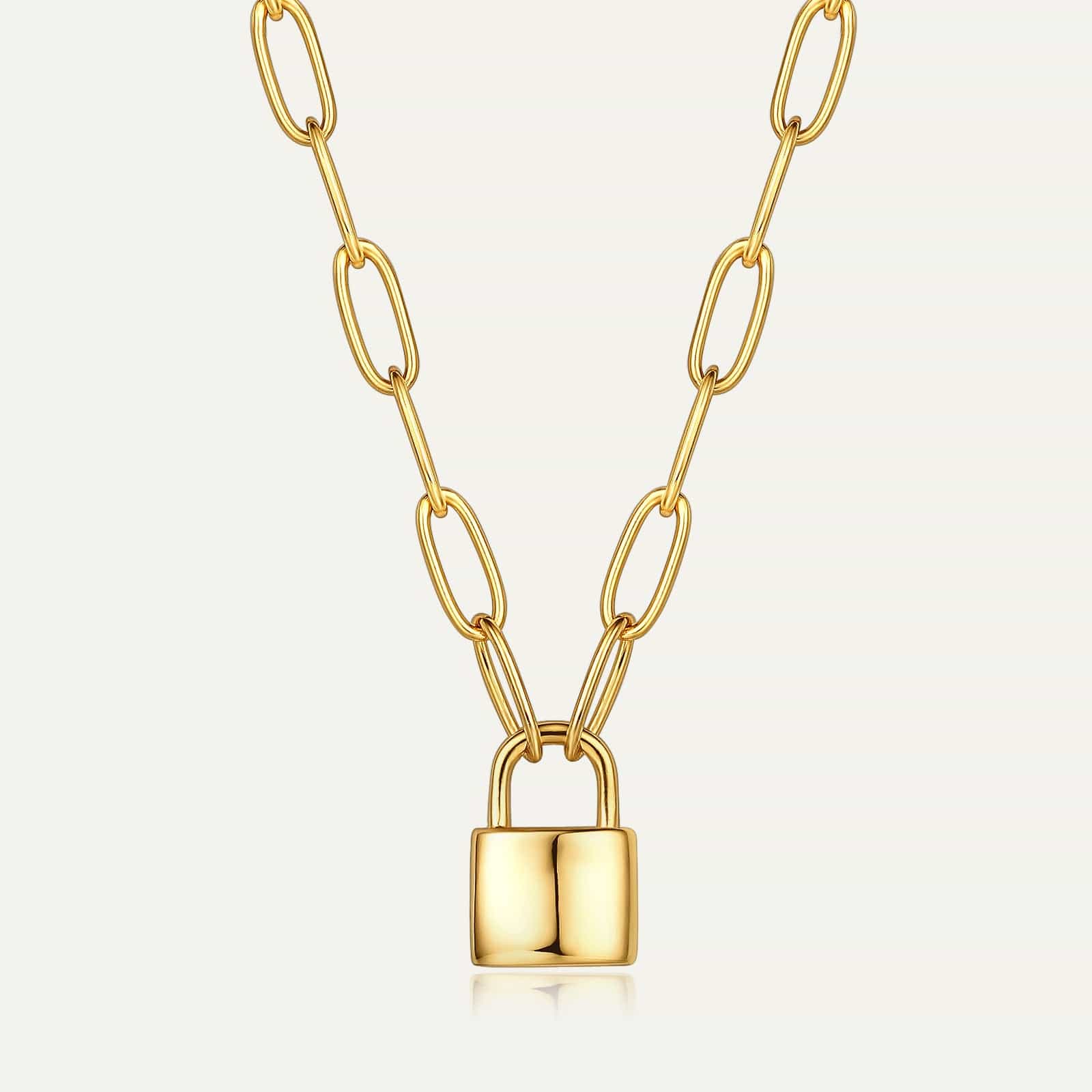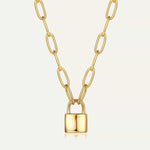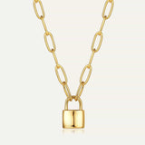 Crafted with meticulous attention to detail, the locked-shape pendant is a standout addition to any jewelry collection. The high-quality gold-plated chain complements the design, creating a smooth and elegant silhouette around your neck.