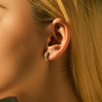 These sleek, contemporary hoops softly hug the earlobe, offering both comfort and style. Wear them solo for a subtle shine or stack with studs for a bold, fashionable statement.