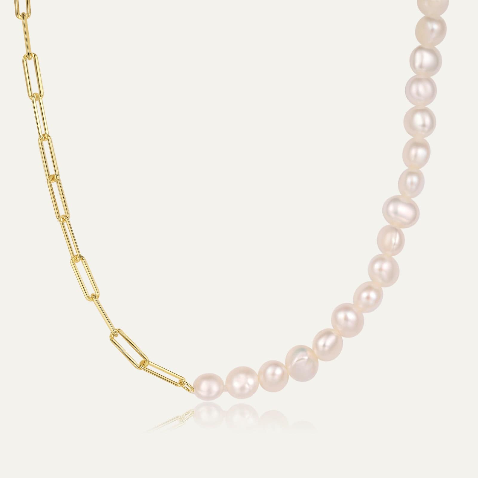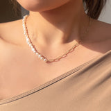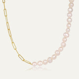 Make a statement with our Twilight Pearl Choker Necklace. This striking design features a beautiful blend of luminous pearls and elegant chain links, offering a perfect balance of modern style and classic charm. Adjustable for a comfortable fit, this necklace is ideal for dressing up any outfit or adding a touch of sophistication to your everyday look.
