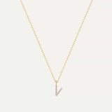 V Necklace / 14K Solid Gold Initial Diamond Necklace